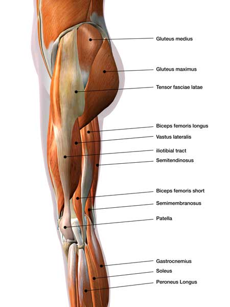Your hamstring muscles – the biceps femoris, semitendinosus, and semimembranosus – flex your knee and support it throughout the entire running motion.